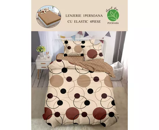 Lenjerie de Pat Bumbac Finet, 1 persoana , cearsaf cu elastic - SIPRT60-47