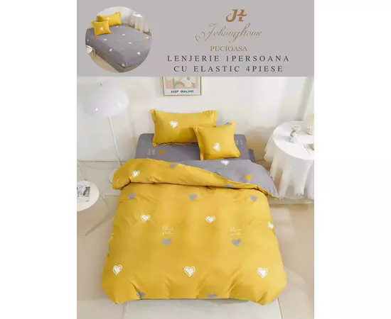 Lenjerie de Pat Bumbac Finet, 1 persoana , cearsaf cu elastic - SIPRT60-76