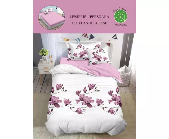 Lenjerie de Pat Bumbac Finet, 1 persoana , cearsaf cu elastic - SIPRT60-40