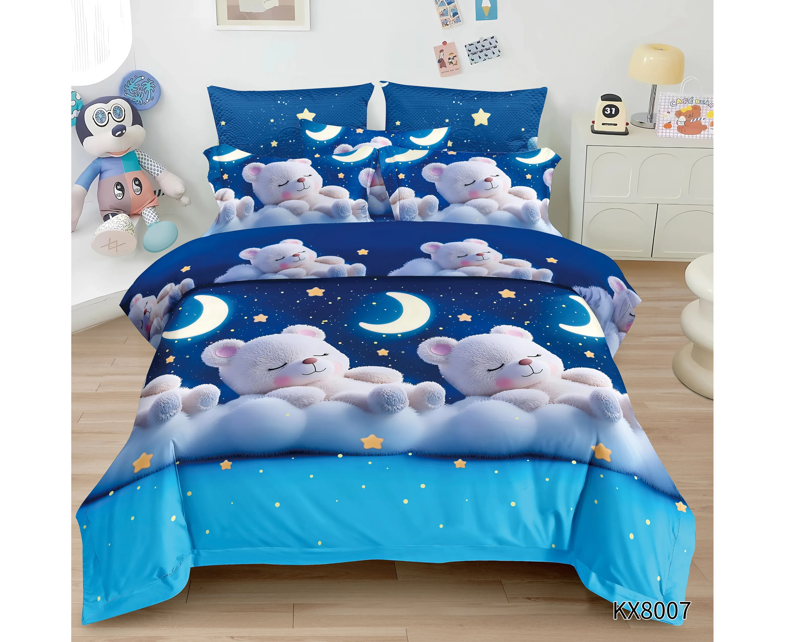 ATENTIE: Imprimeurile de pe fetele de perne pot fi oricare parte din imprimeul de pe cearsaful de pilota in functie de cum este taiat materialul in procesul de croiala.