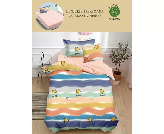 Lenjerie de Pat Bumbac Finet, 1 persoana , cearsaf cu elastic - SIPRT60-19