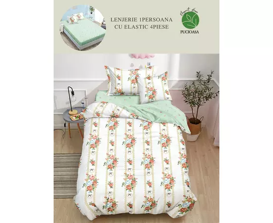 Lenjerie de Pat Bumbac Finet, 1 persoana , cearsaf cu elastic - SIPRT60-27