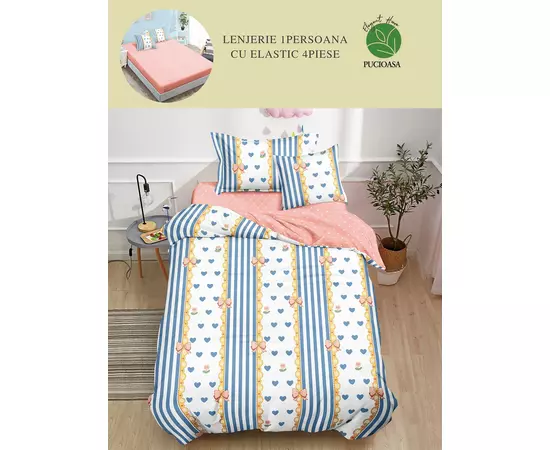 Lenjerie de Pat Bumbac Finet, 1 persoana , cearsaf cu elastic - SIPRT60-32