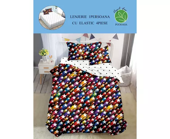 ATENTIE: Imprimeurile de pe fetele de perne pot fi oricare parte din imprimeul de pe cearsaful de pilota in functie de cum este taiat materialul in procesul de croiala.