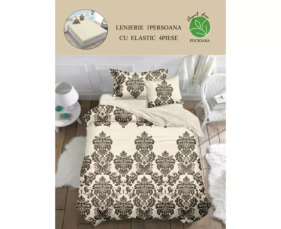 Lenjerie de Pat Bumbac Finet, 1 persoana , cearsaf cu elastic - SIPRT60-46