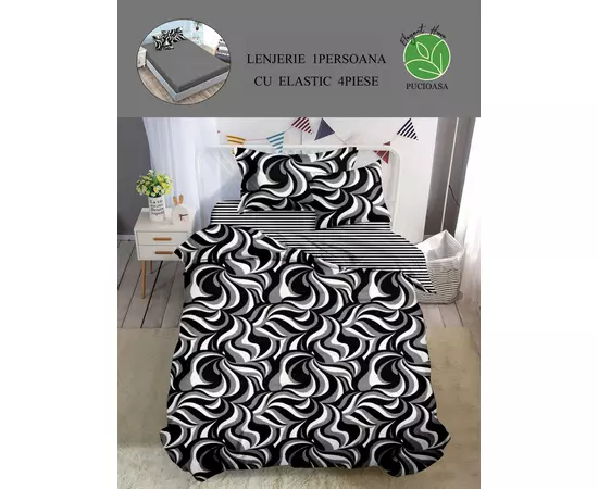 Lenjerie de Pat Bumbac Finet, 1 persoana , cearsaf cu elastic -SIPRT60-49