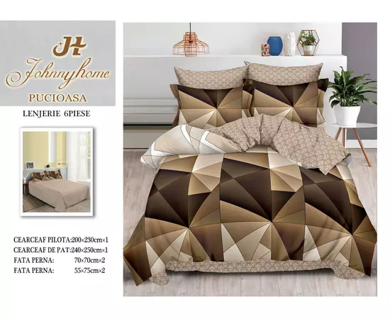 Lenjerie de Pat Bumbac Finet, 2 Persoane, 6 Piese - SIPRR60-372