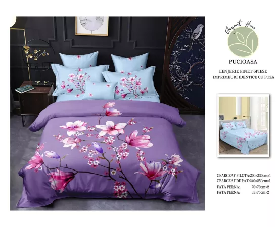 Lenjerie de Pat pentru 2 persoane cu 6 piese confectionata din Bumbac Finet 3D.
