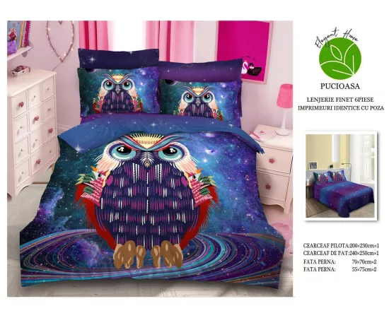 Lenjerie de Pat pentru 2 persoane cu 6 piese confectionata din Bumbac Finet 3D.