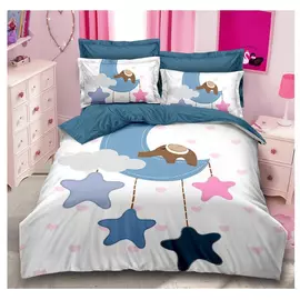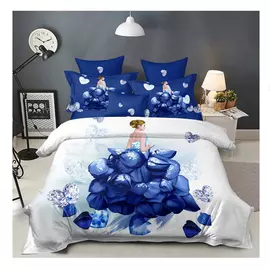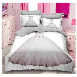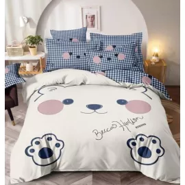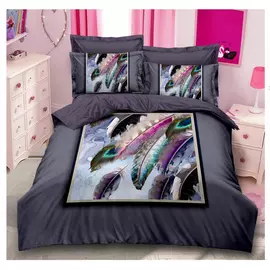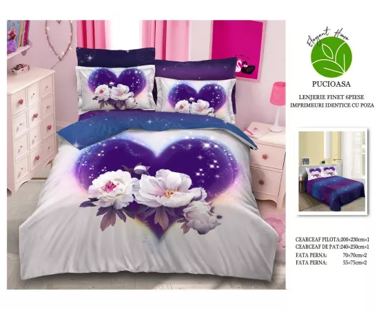 Lenjerie de Pat pentru 2 persoane cu 6 piese confectionata din Bumbac Finet 3D.