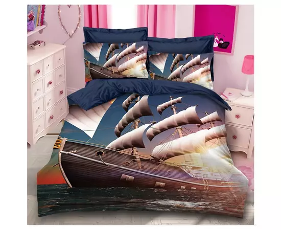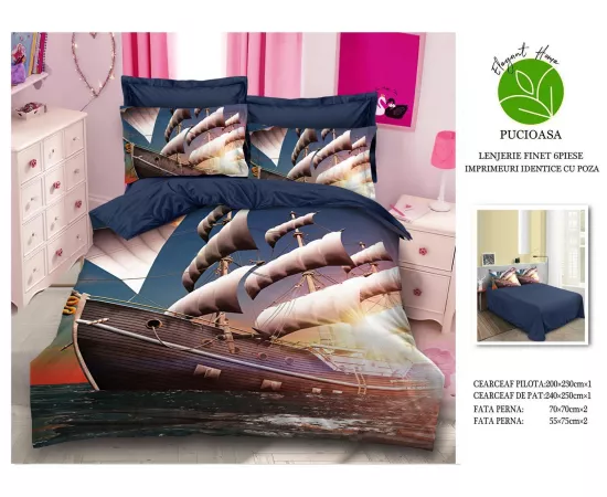 Lenjerie de Pat pentru 2 persoane cu 6 piese confectionata din Bumbac Finet 3D.