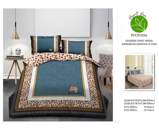 Lenjerie de Pat pentru 2 persoane cu 6 piese confectionata din Bumbac Finet 3D.