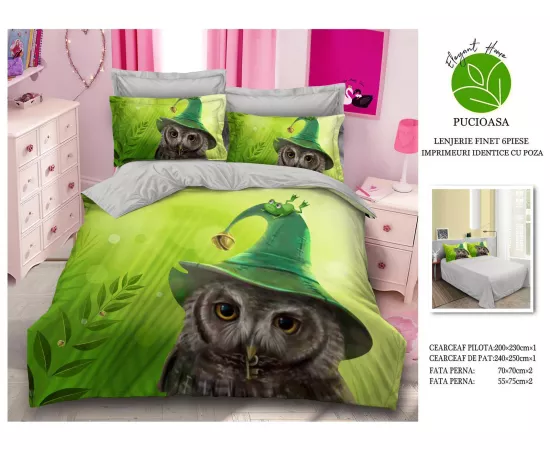 Lenjerie de Pat pentru 2 persoane cu 6 piese confectionata din Bumbac Finet 3D.