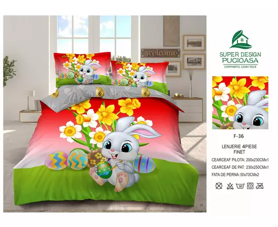- Dimensiune cearceaf pat: 230cm x 250cm.