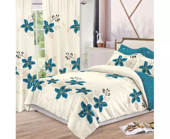 Lenjerie de Pat pentru 2 persoane cu 6 piese confectionata din Bumbac Finet + 2 draperii 150x230cm