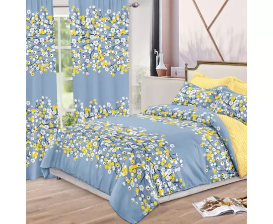 Lenjerie de Pat pentru 2 persoane cu 6 piese confectionata din Bumbac Finet + 2 draperii 150x230cm