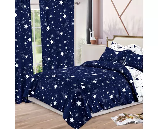 Lenjerie de Pat pentru 2 persoane cu 6 piese confectionata din Bumbac Finet + 2 draperii 150x230cm