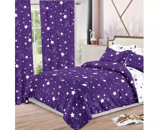Lenjerie de Pat pentru 2 persoane cu 6 piese confectionata din Bumbac Finet + 2 draperii 150x230cm