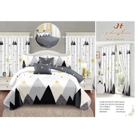 Lenjerie de Pat pentru 2 persoane cu 6 piese confectionata din Bumbac Finet + 2 draperii 150x230cm