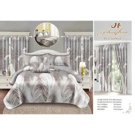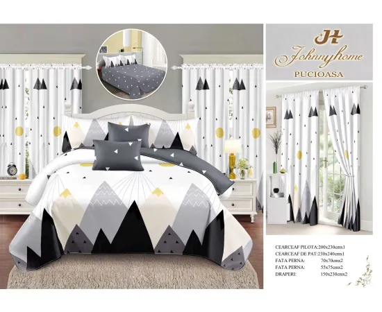 Lenjerie de Pat pentru 2 persoane cu 6 piese confectionata din Bumbac Finet + 2 draperii 150x230cm
