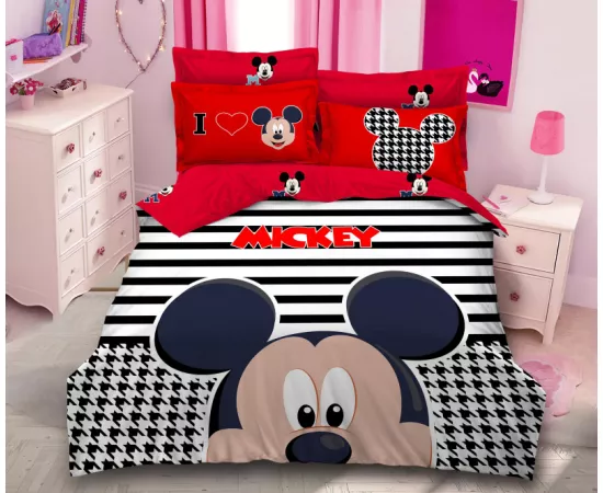 Lenjerie De Pat Bumbac Finet, 6 Piese, Mickey Mouse - SIPRA2-40