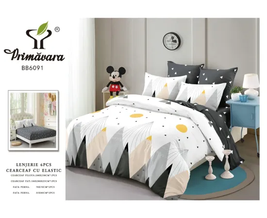 Lenjerie de Pat Bumbac Finet 6 Piese cu Elastic - CPL164