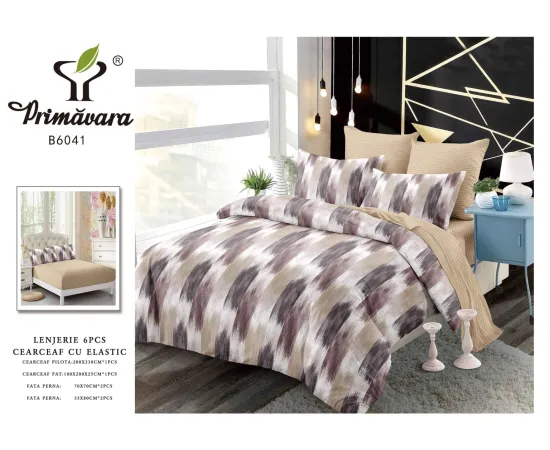 Lenjerie de Pat Bumbac Finet 6 Piese cu Elastic - CPL159