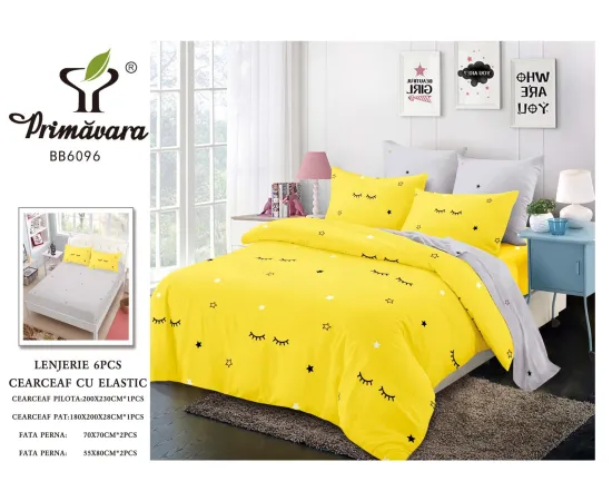 Lenjerie de Pat Bumbac Finet 6 Piese cu Elastic - CPL160