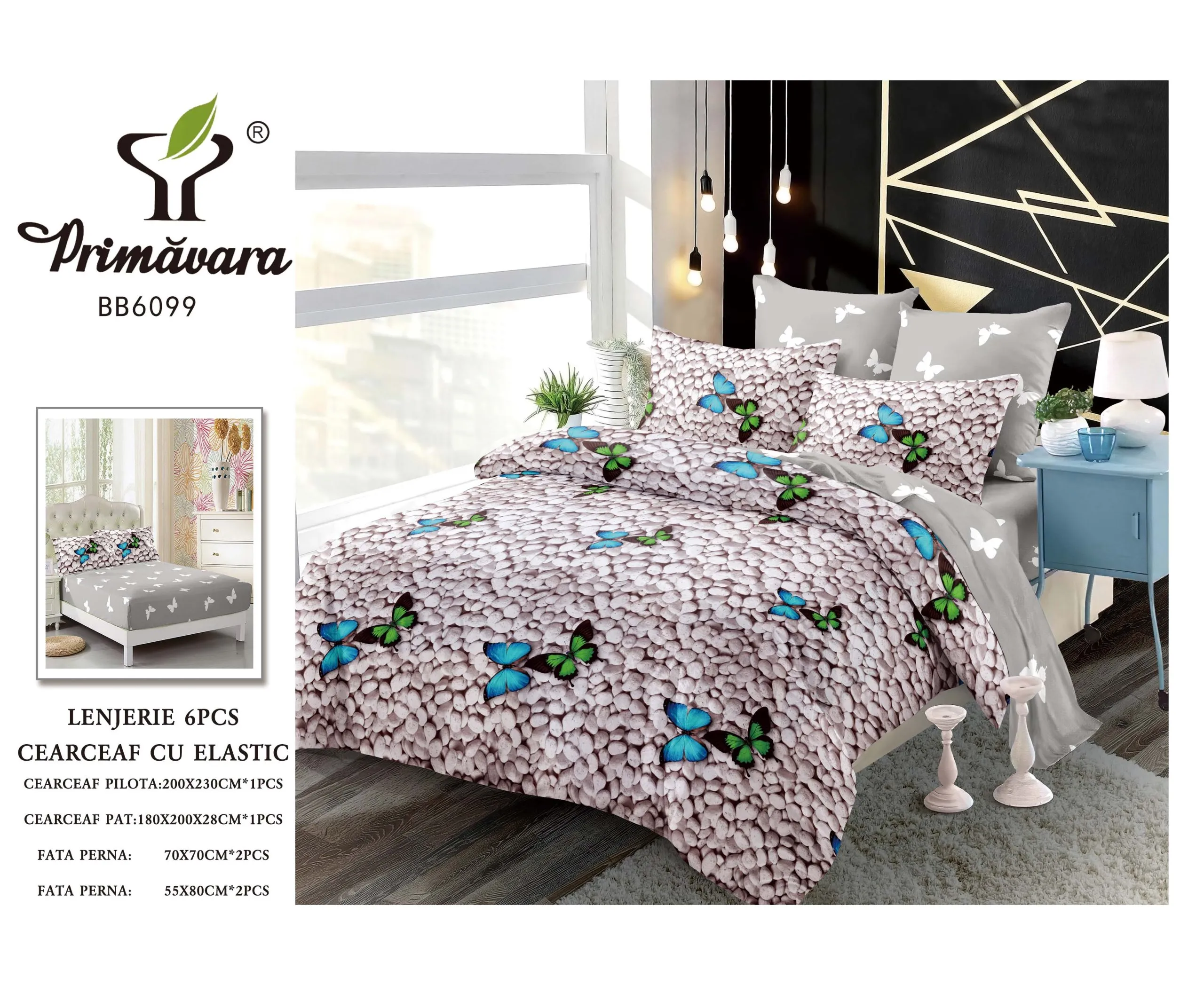 Lenjerie de pat realizata din bumbac finet - 6 Piese (cearsaf de pat cu elastic)