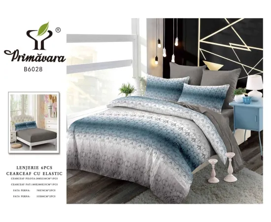 Lenjerie de Pat Bumbac Finet 6 Piese cu Elastic - CPL163