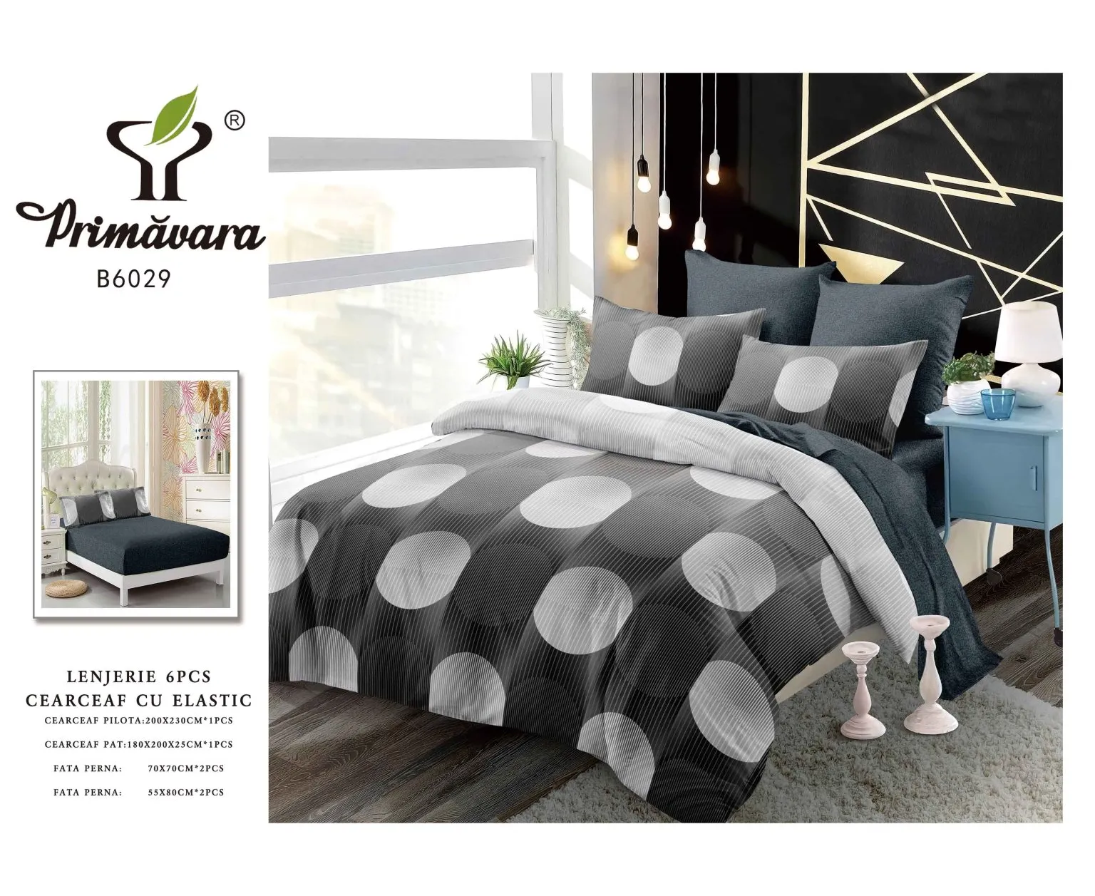 Lenjerie de Pat Bumbac Finet 6 Piese cu Elastic - CPL166
