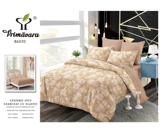 Lenjerie de Pat Bumbac Finet 6 Piese cu Elastic - CPL167