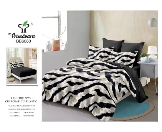 Lenjerie de Pat Bumbac Finet 6 Piese cu Elastic - CPL172
