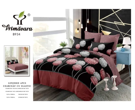 Lenjerie de Pat Bumbac Finet 6 Piese cu Elastic - CPL177