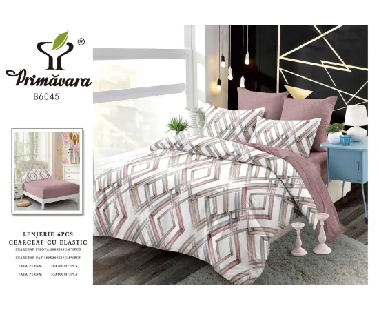 Lenjerie de Pat Bumbac Finet 6 Piese cu Elastic - CPL186