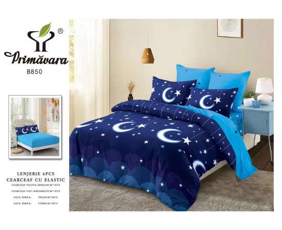 Lenjerie de Pat Bumbac Finet 6 Piese cu Elastic - CPL199
