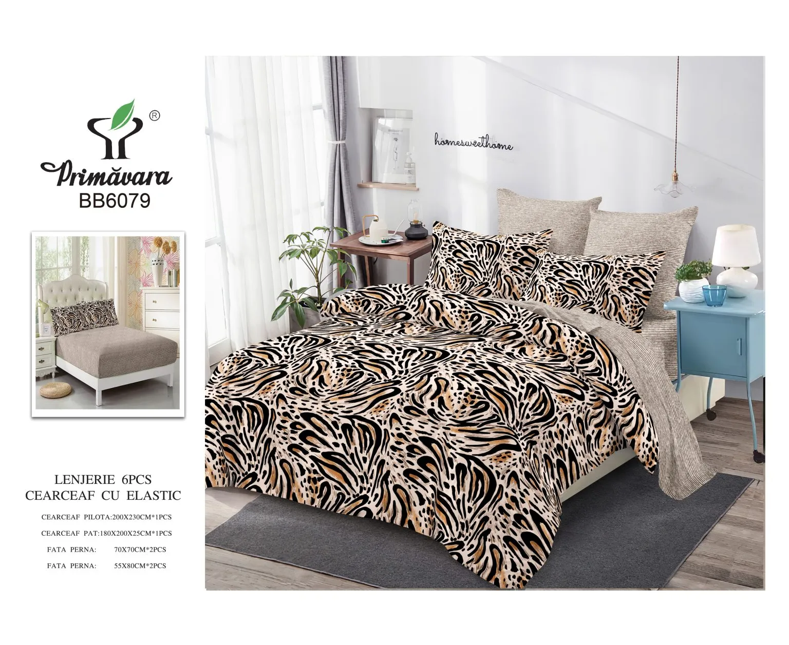 Lenjerie de Pat Bumbac Finet 6 Piese cu Elastic - CPL211