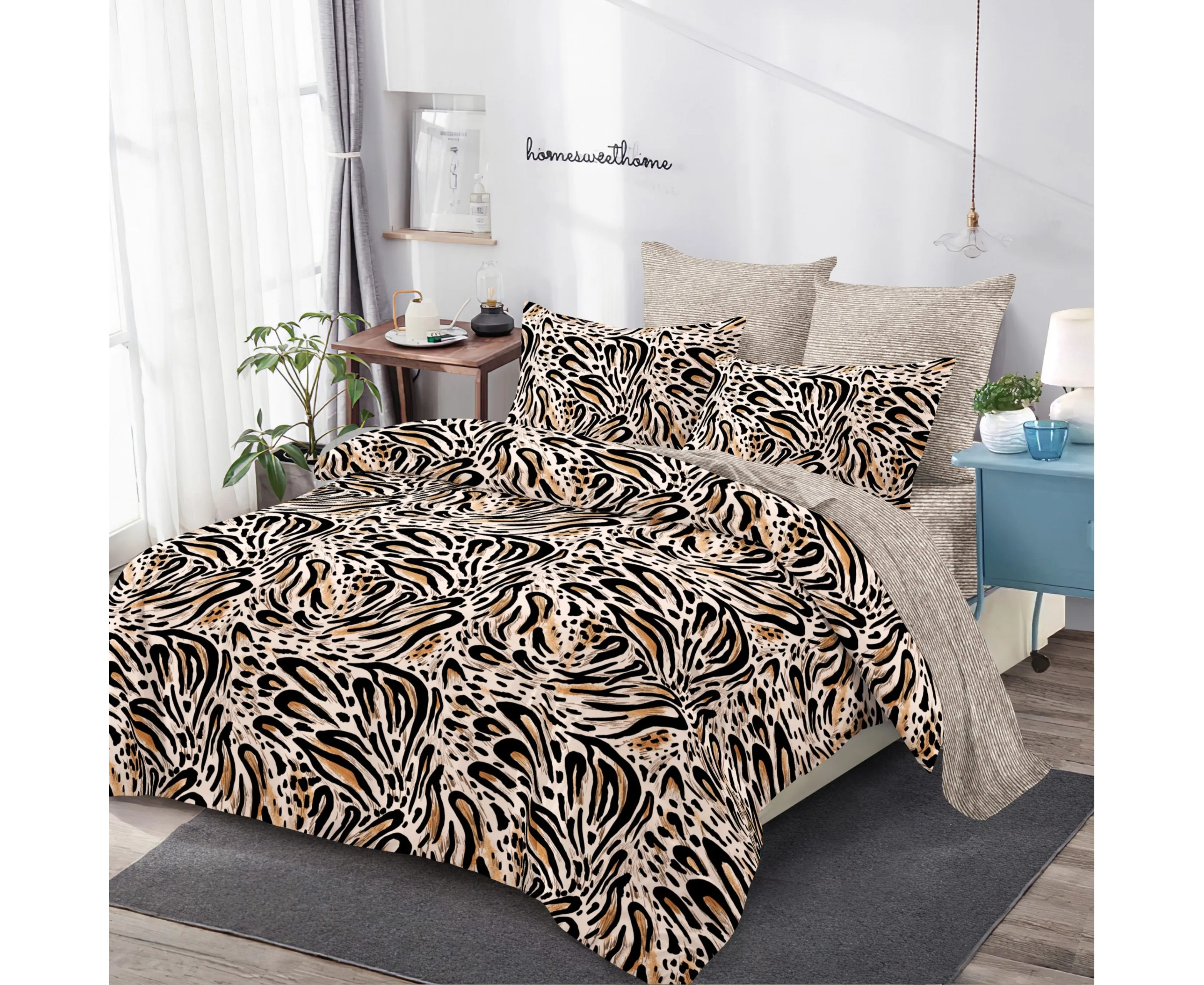 Lenjerie de pat realizata din bumbac finet - 6 Piese (cearsaf de pat cu elastic)