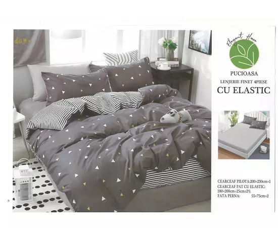 Lenjerie de pat Bumbac Finet 6 piese cu elastic - INVE-32