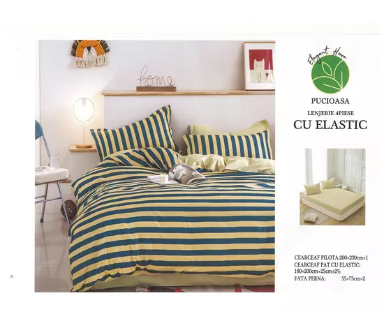 Lenjerie de pat Bumbac Finet 6 piese cu elastic - INVE-36