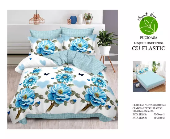 Lenjerie de pat Bumbac Finet 6 piese cu elastic - SIPRT134