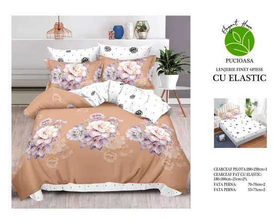 Lenjerie de pat Bumbac Finet 6 piese cu elastic - SIPRT148