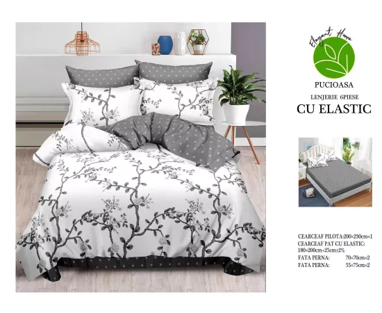 Lenjerie de pat Bumbac Finet 6 piese cu elastic - SIPRT166
