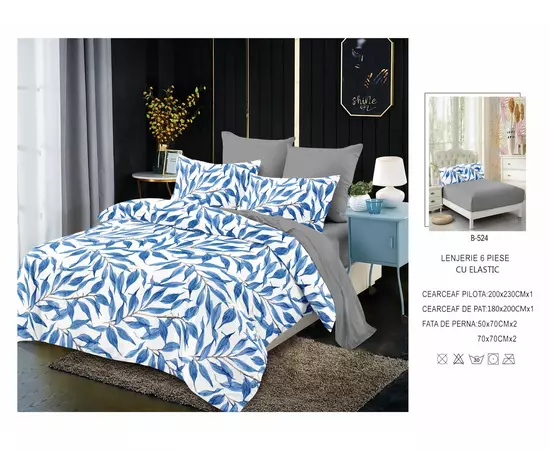 Lenjerie de pat Bumbac Finet 6 piese cu elastic - FR355