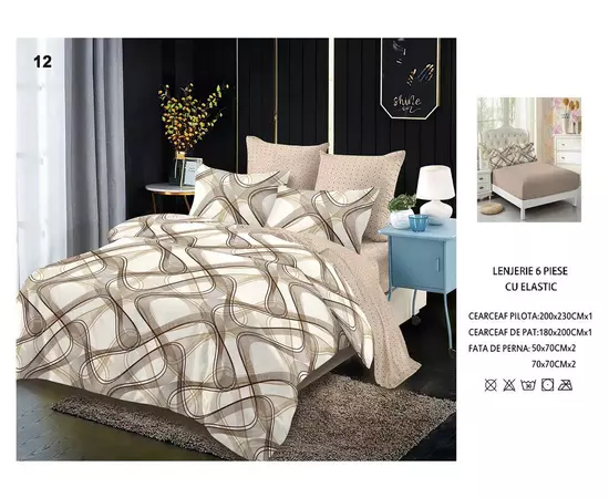 Lenjerie de pat Bumbac Finet 6 piese cu elastic - FR370