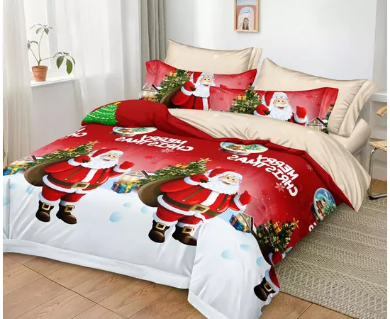 Lenjerie de pat cu imprimeu modern, cu Mos Craciun.