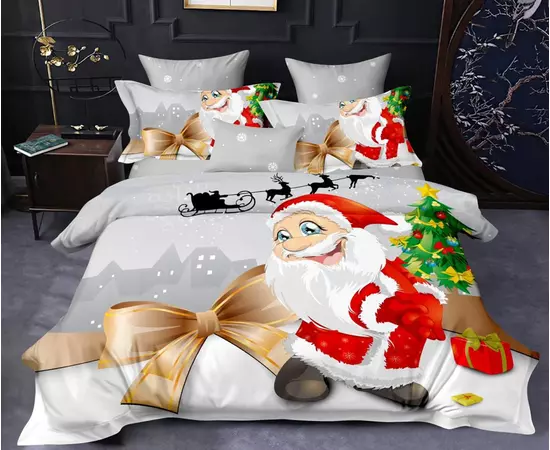 Lenjerie de pat cu imprimeu modern, cu Mos Craciun.