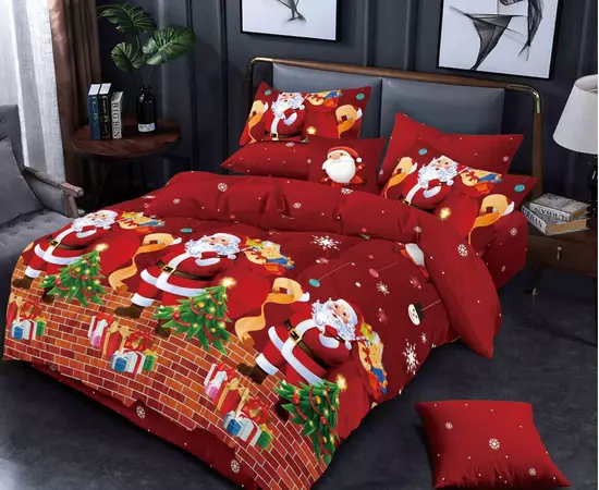 Lenjerie de pat cu imprimeu modern, cu Mos Craciun.