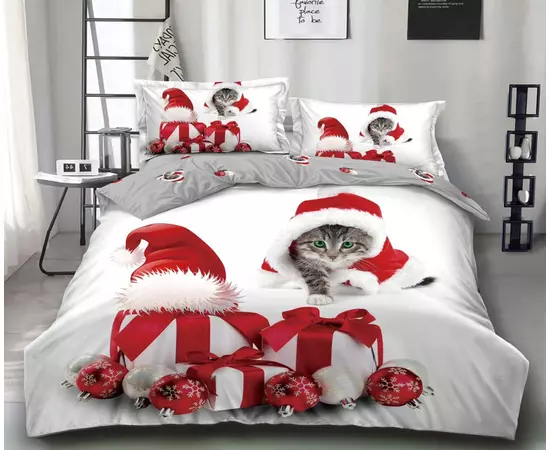 Lenjerie de pat cu imprimeu modern, cu Mos Craciun.