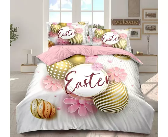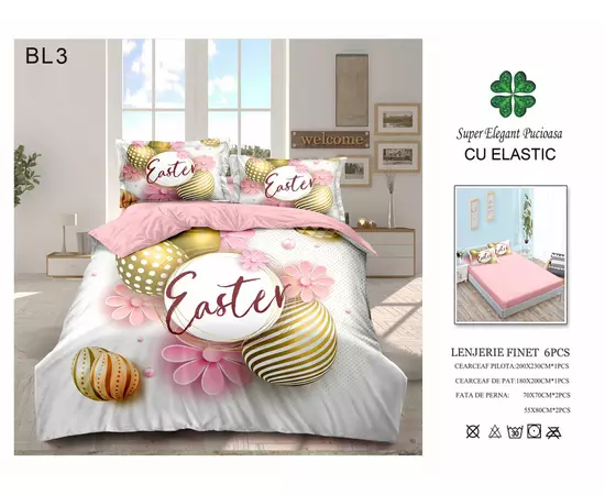 Lenjerie de pat Bumbac Finet, 6 Piese cu Elastic, Model de Paste - PUC233